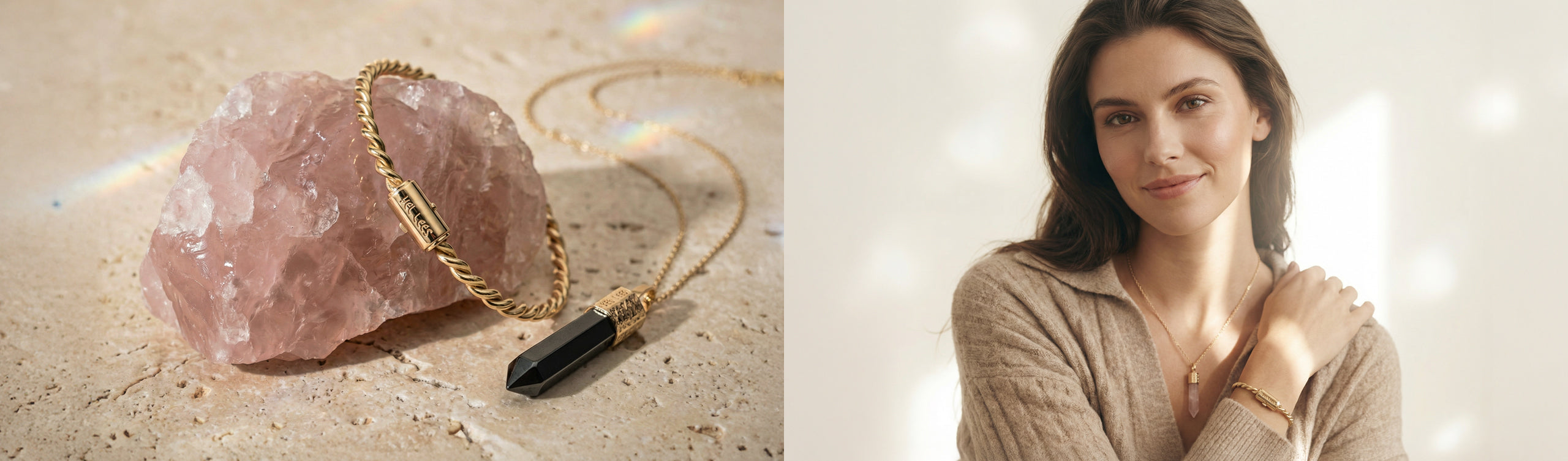 Zawieszki z Rodonitem i Kawrcem Różowym dla Niej i dla Niego - Mosiądz pozłacany
