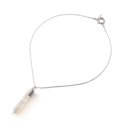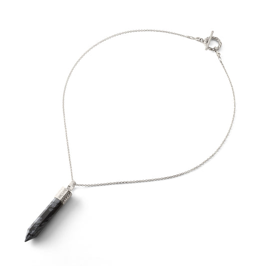 Collier 44 cm avec Obsidienne des Neiges – Argent 925 plaqué platine