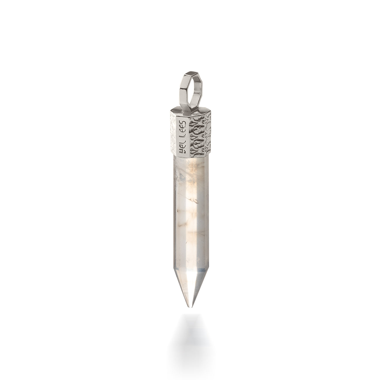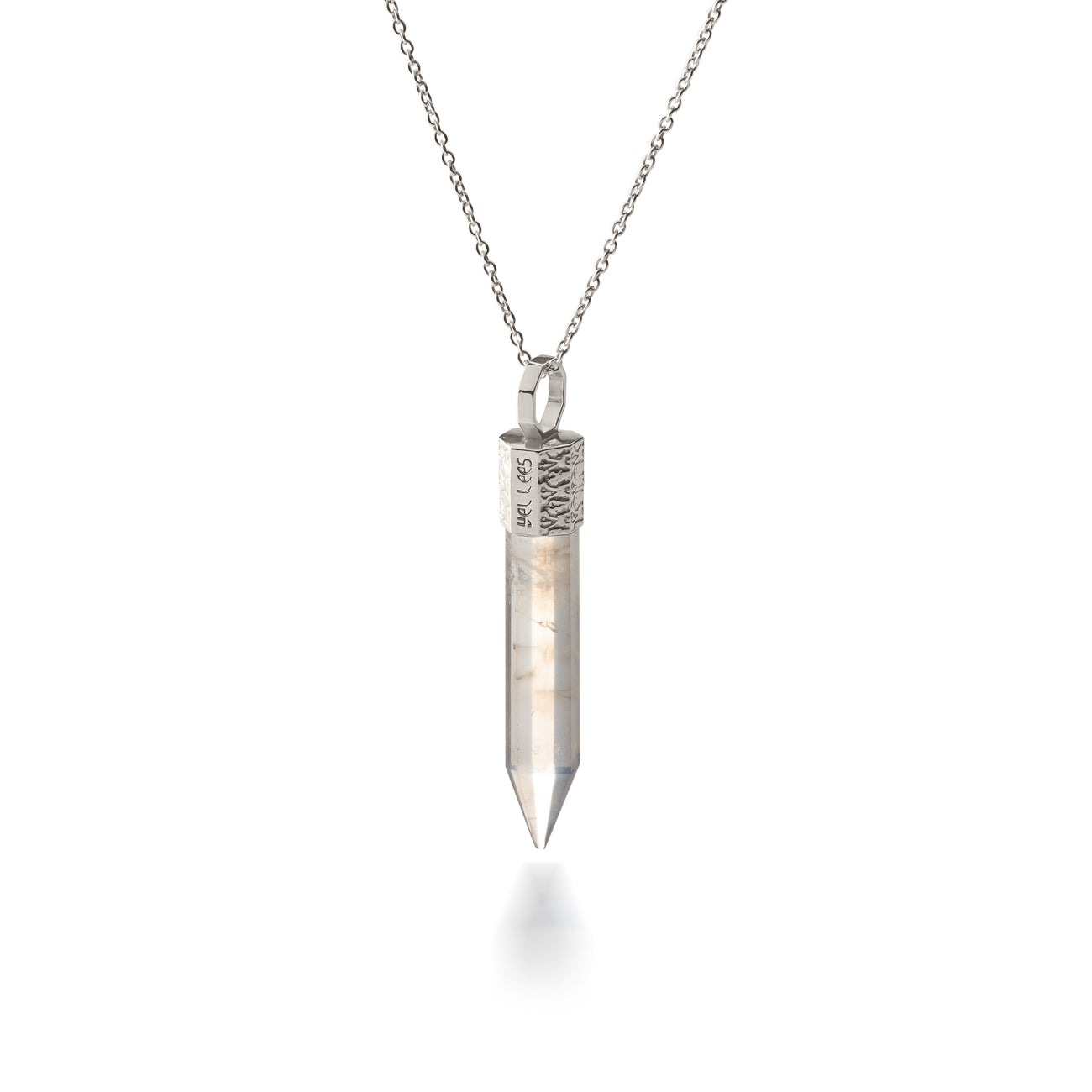 Collier avec cristal de roche 44 mm en argent 925 plaqué platine de la collection TERRA 44 C'est un talisman de pureté, d'équilibre et d'énergie universelle. Il renforce les intentions, purifie l'aura et harmonise l'espace environnant. Idéal pour celles et ceux qui recherchent la clarté intérieure, la guidance spirituelle et l'harmonie avec le monde.