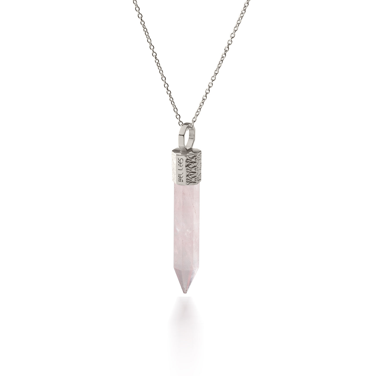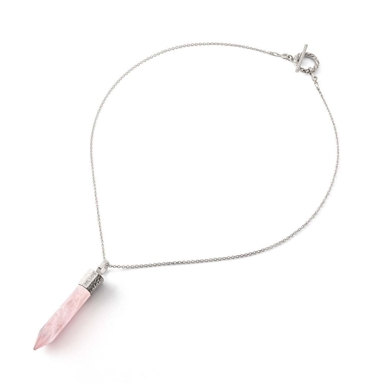 Naszyjnik z kwarcem różowym 44 mm ze srebra 925 pokrytego platyną z kolekcji TERRA 44 to talizman serca i miłości. Łączy w sobie delikatność, empatię i duchową równowagę. Idealny dla osób, które pragną żyć w zgodzie z uczuciami, przyciągać harmonię i pielęgnować ciepło relacji.
