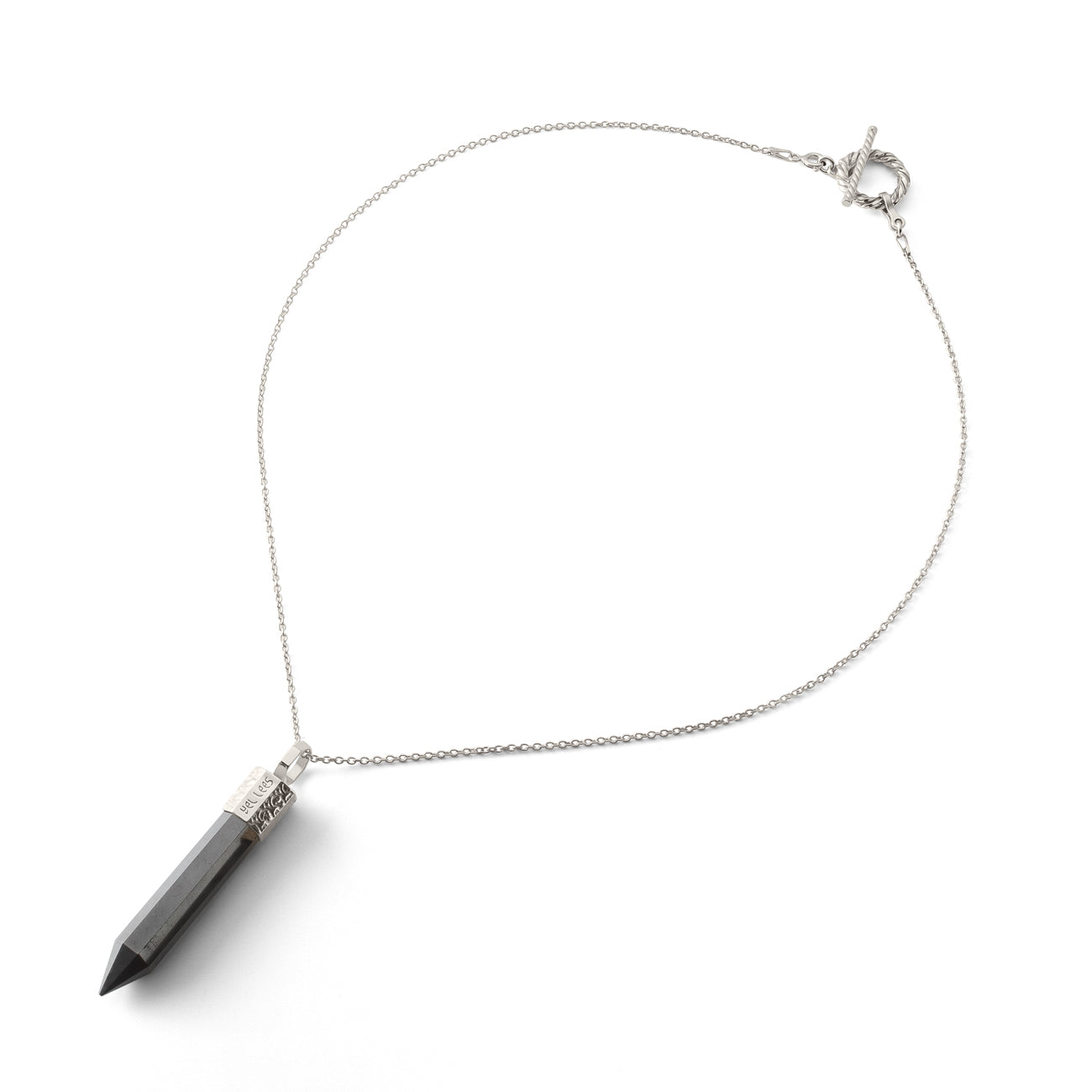 Collier avec tourmaline noire 44 mm en argent 925 plaqué platine de la collection TERRA 44 C'est un talisman de protection, de stabilité et d'ancrage. Idéal pour les personnes sensibles aux énergies de leur environnement, en quête de paix, d'équilibre et d'un havre de paix au quotidien.